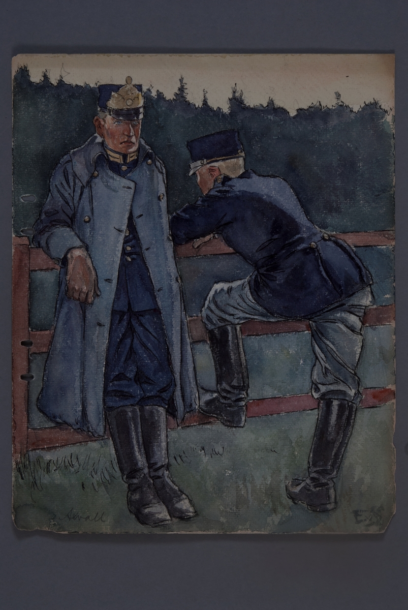 Soldater i skymningen, teckning av Einar von Strokrich.
