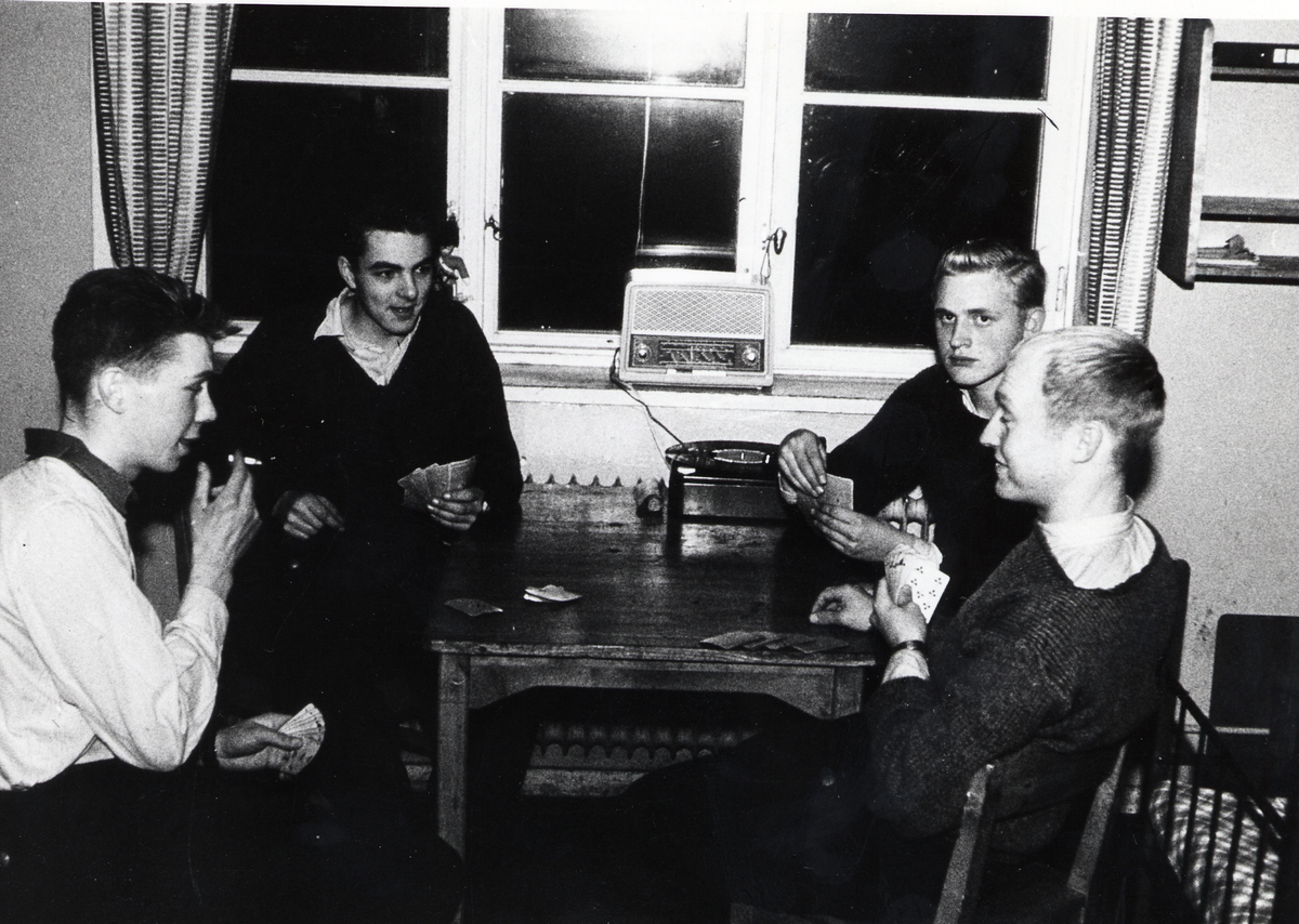 Stabsfurirskolan i Göteborg. Soldater spelar whist i logementet.