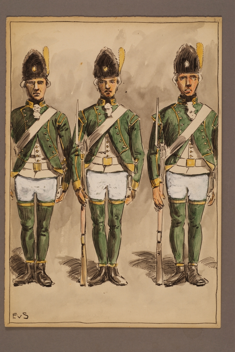 Plansch med uniform för Infanteriets jägare 1779, ritad av Einar von Strokirch.
