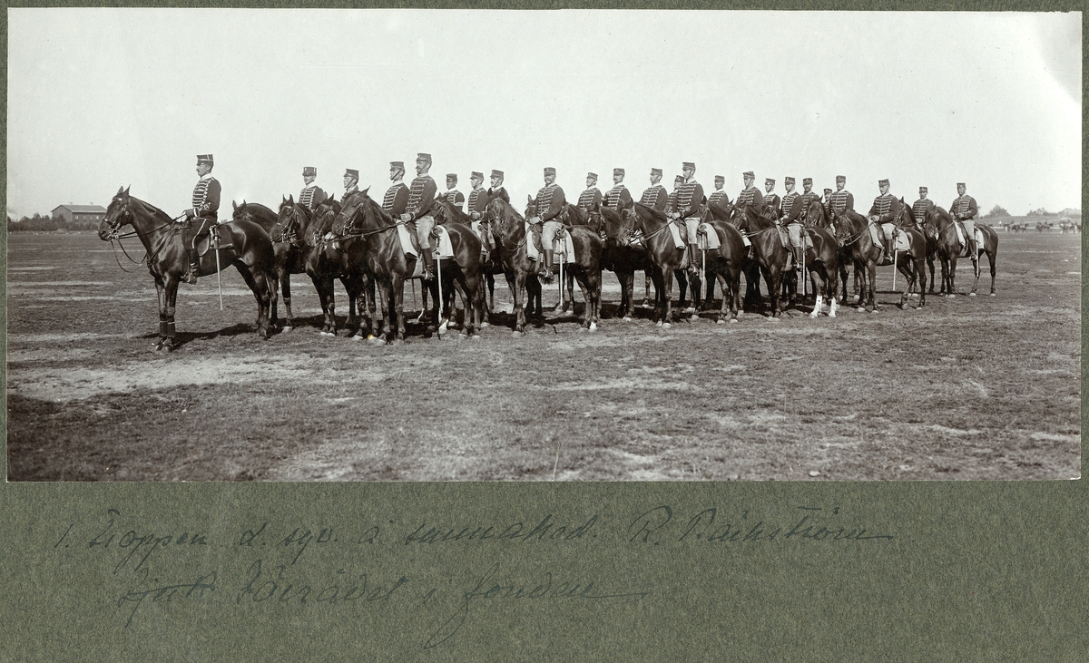1:a troppen vid Livregementets husarer, K 3, uppställda till häst på Sanna hed.