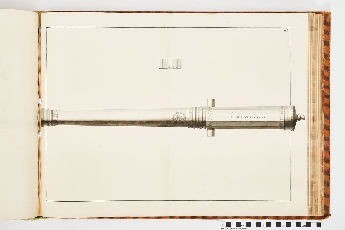 Avbildning föreställande dansk trofé med åtskilliga vapen. Ingår i volym med avbildade äldre svenska eldrör förvarade på fästningar samt eldrör erövrade åren 1598-1679.
