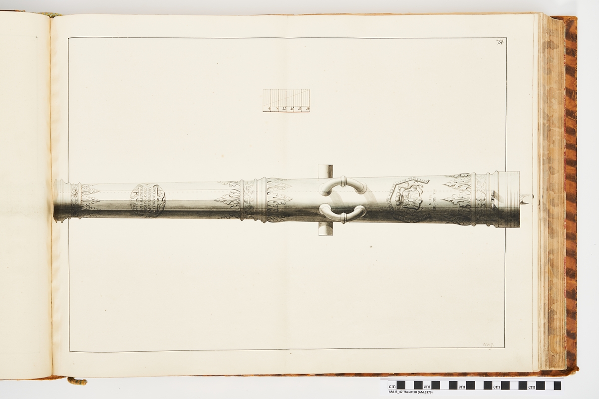 Titel: Avbildning föreställande polsk trofé med Sigismunds vapen. Ingår i volym med avbildade äldre svenska eldrör förvarade på fästningar samt eldrör erövrade åren 1598-1679.