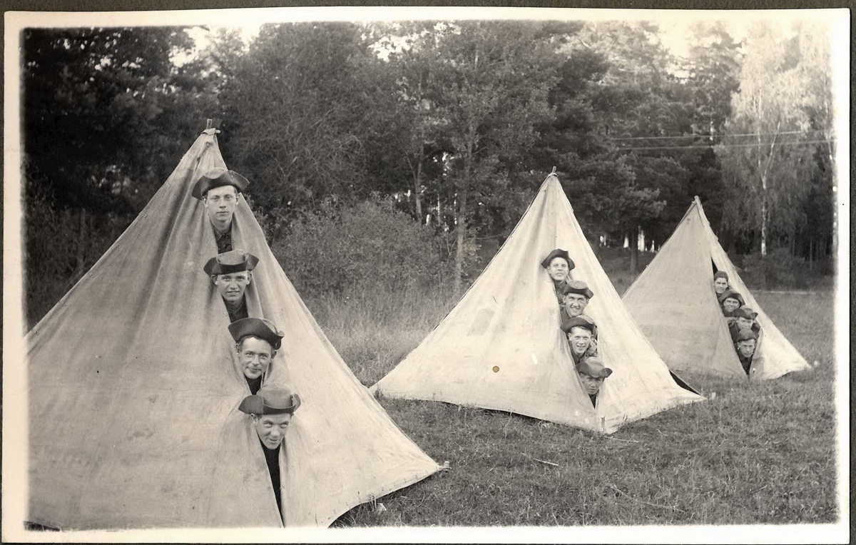Titel: Tältläger med värnpliktiga från Vaxholms grenadjärregemente I26.