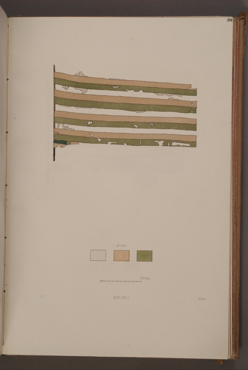 Titel: Avbildning i gouache föreställande fälttecken taget som trofé av svenska armén. Den avbildade fanan finns bevarad i Armémuseums samling, för mer information, se relaterade objekt