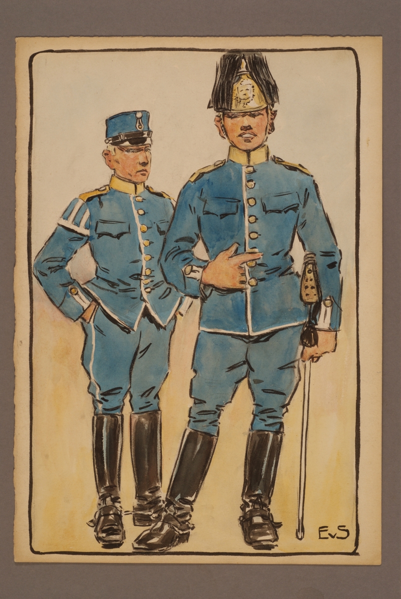 Plansch med uniform för Skånska dragoner, ritad av Einar von Strokirch.