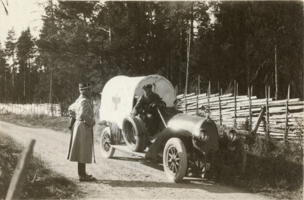 Titel: Möte på landsvägen. Fälttjänstövning i Uppland.