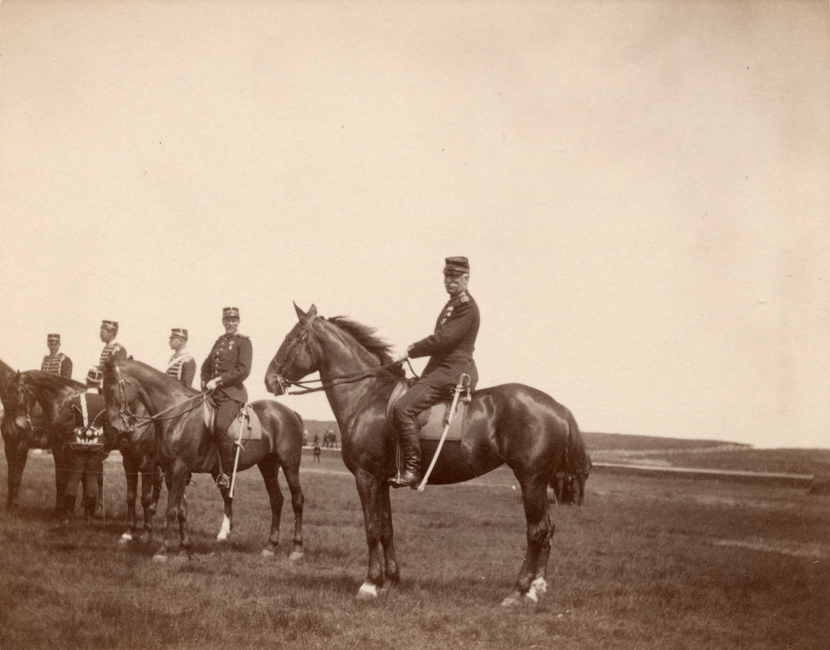 Titel: Soldater till häst från Livregementets husarkår.