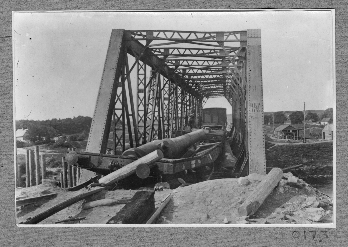 Titel: Tåg på järnvägsbro.