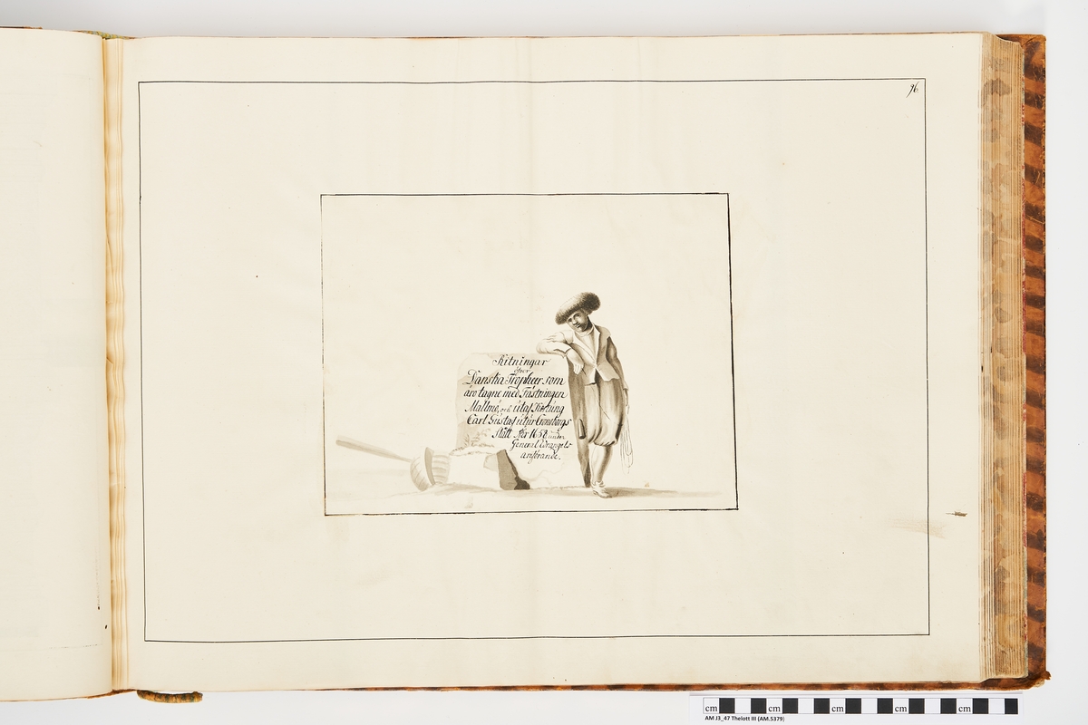 Kartusch till bokverk med avbildningar föreställande äldre svenska eldrör förvarade på fästningar samt eldrör erövrade åren 1598-1679, utförda av syskonen Anna Maria och Philip Jakob Thelott. Avser ritningar över danska troféer som är tagna med fästningen Malmö och utav konung Karl Gustaf utur Kronoborgs slott år 1658, under general Wrangels anförande.