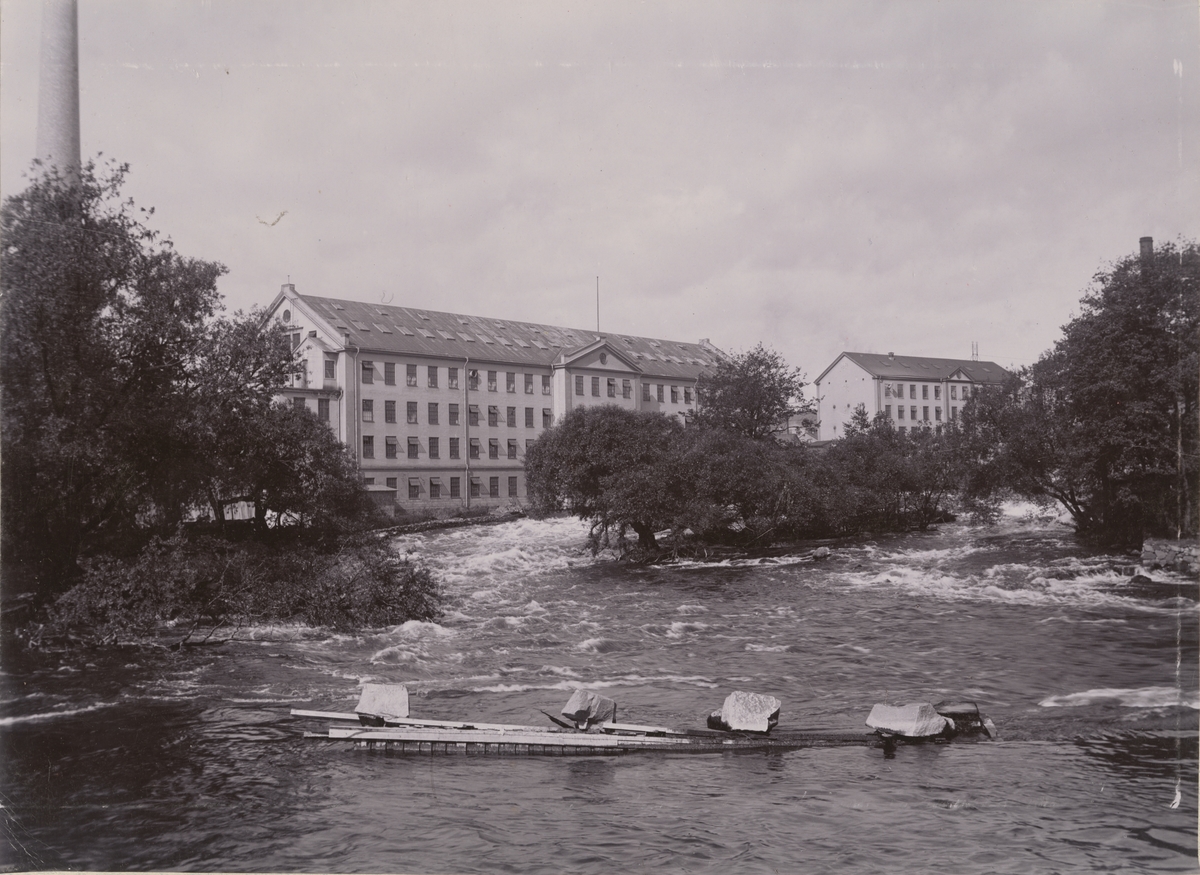 Stadsvy från Norrköping med Holmens bruk mitt i bild.