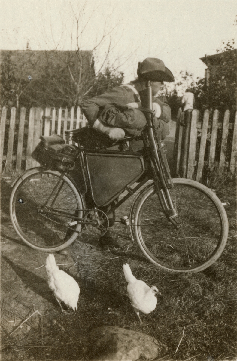 Titel: Cykelordonans i uniform m/1910. Fälttjänstövning i Uppland.
