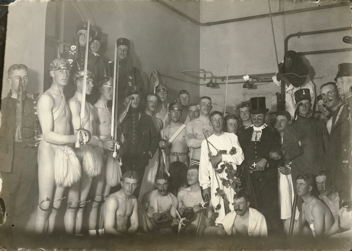 Höga Rådet (elevrådet) vid Krigsskolan Karlberg utför skådespelet "Kadett Pihlqvists dop".