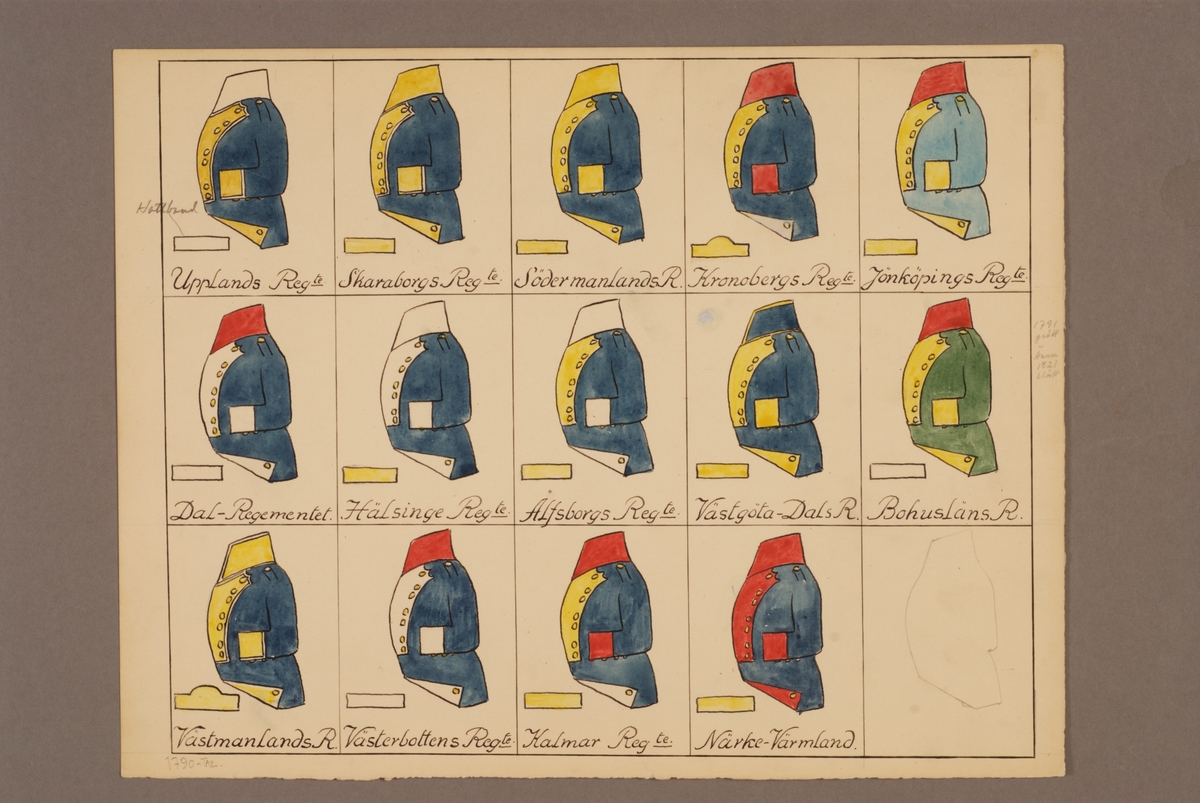 Plansch med uniformering för indelta infanteriet, ritad av Einar von Strokirch.