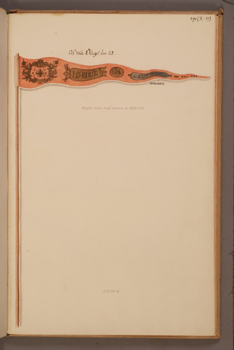 Avbildning i gouache föreställande fälttecken taget som trofé av svenska armén. Den avbildade lansfanan finns bevarad i Armémuseums samling, för mer information, se relaterade objekt.