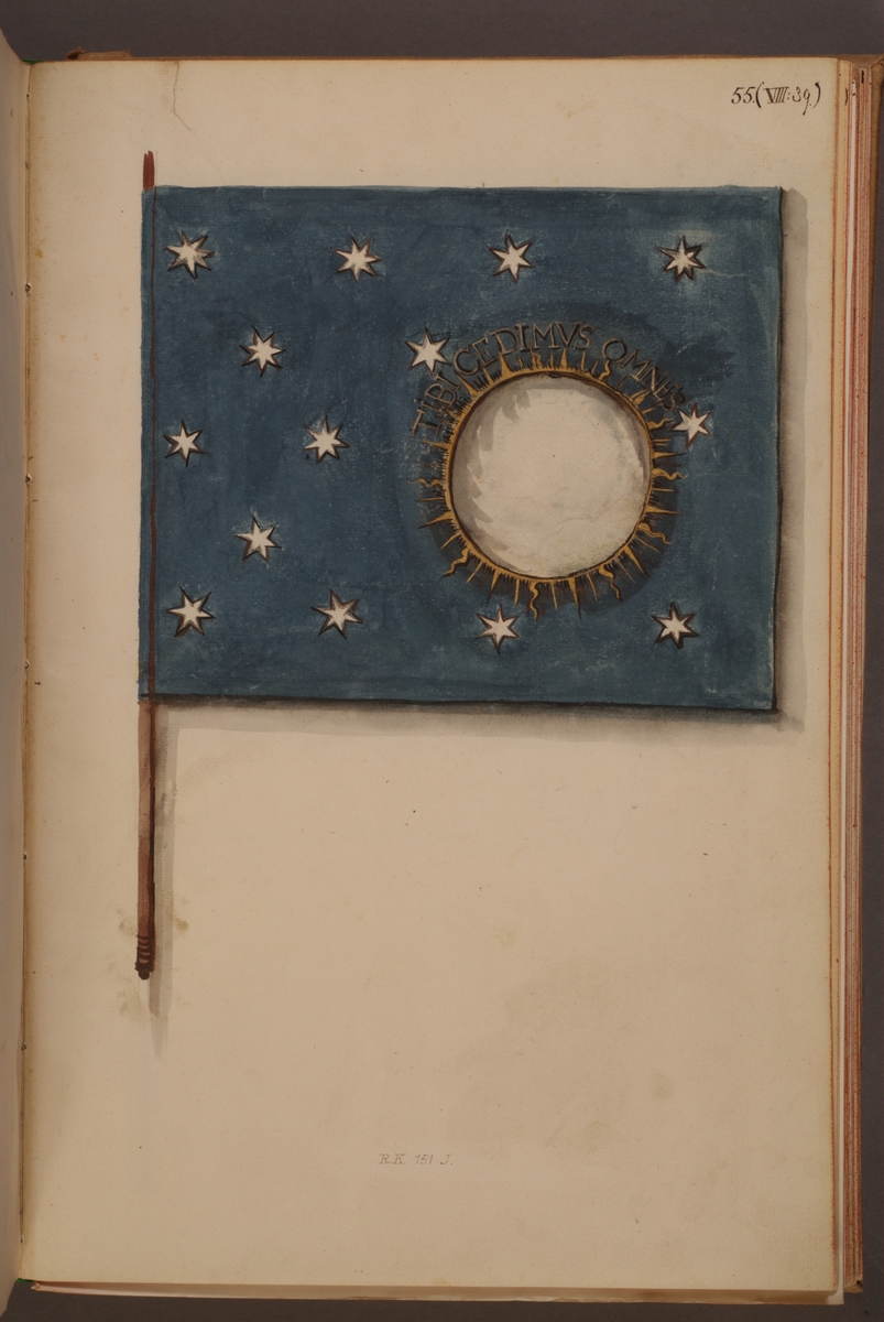 Avbildning i gouache föreställande fälttecken taget som trofé av svenska armén. Den avbildade fanan finns inte bevarad i Armémuseums samling.