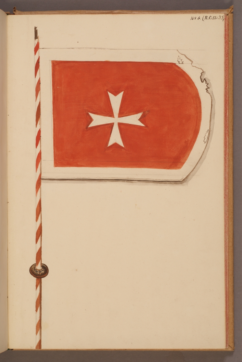 Avbildning i gouache föreställande fälttecken taget som trofé av svenska armén. Möjligen samma fana som AMA.0005095.