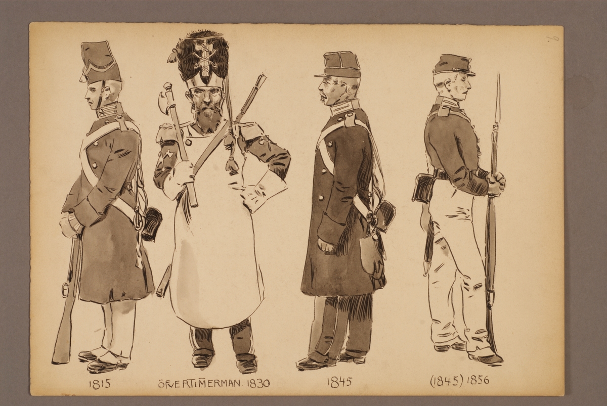 Plansch med uniform för Svea livgarde och Göta livgarde, ritad av Einar von Strokirch.