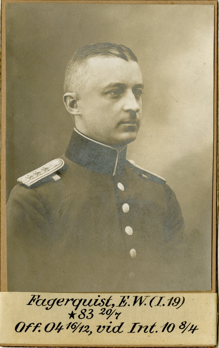 Porträtt av Edgar Valfrid Fagerquist, officer vid Norrbottens regemente I 19 och Intendenturkåren.