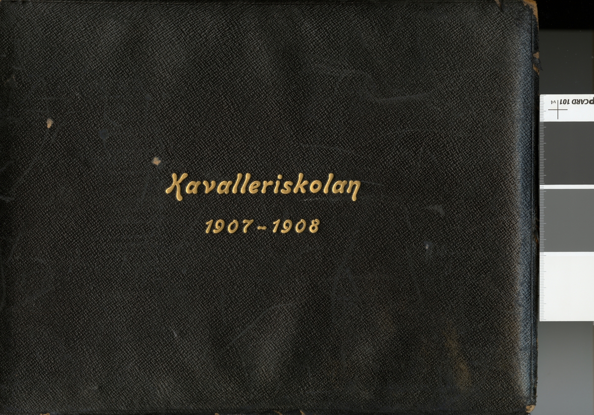 Titel: Omslag till fotoalbum "Kavalleriskolan 1907-1908".