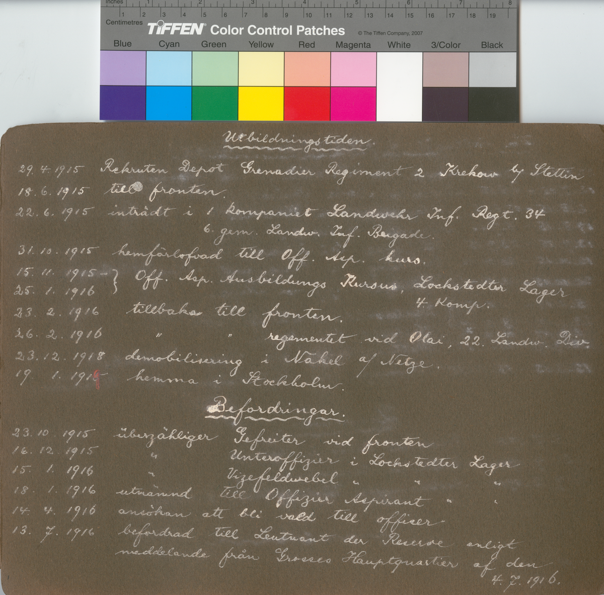 18.1.1916 utnämnd till Offizier Aspirant i Lockstedter Lager