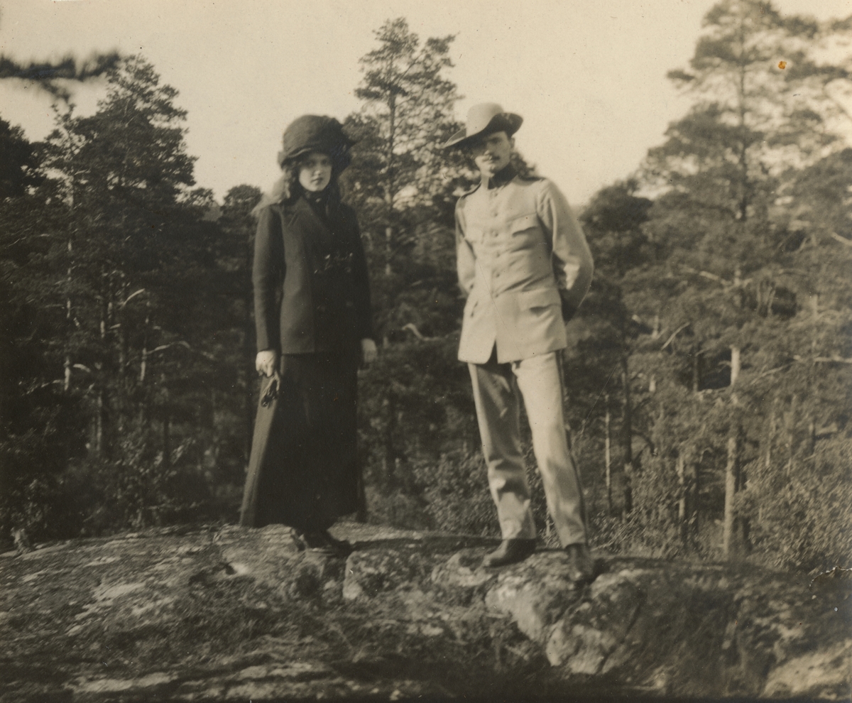 Titel: Foto på en man och en kvinna stående på bergsknalle.