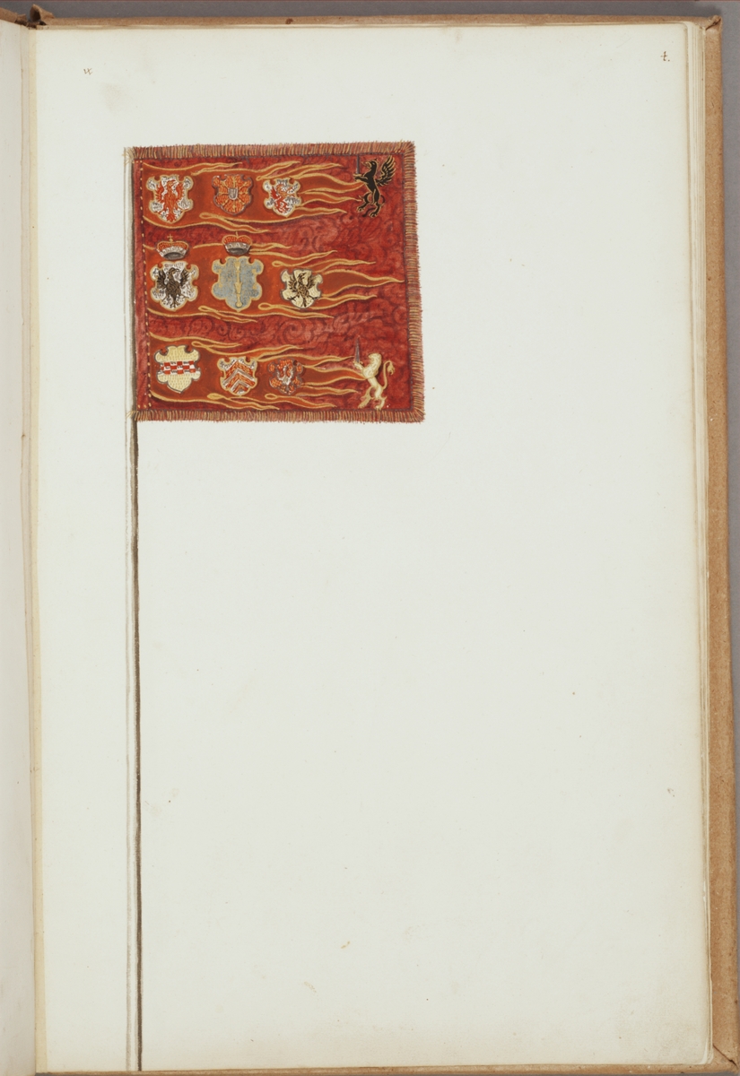 Titel: Avbildning i gouache föreställande fälttecken taget som trofé av svenska armén. Det avbildade standaret finns inte bevarat i Armémuseums samling.