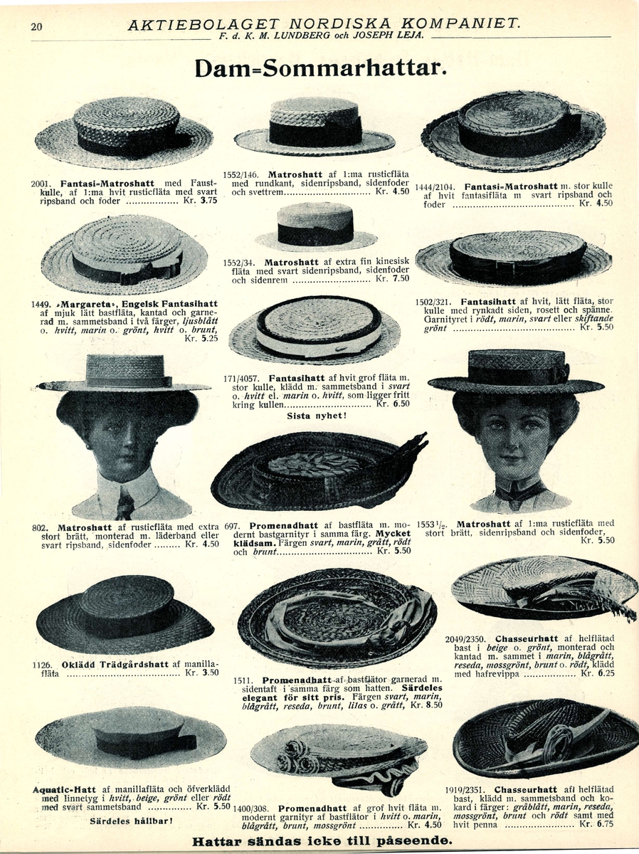 Ur AB Nordiska Kompaniets varukatalog, 1906. Damhattar.