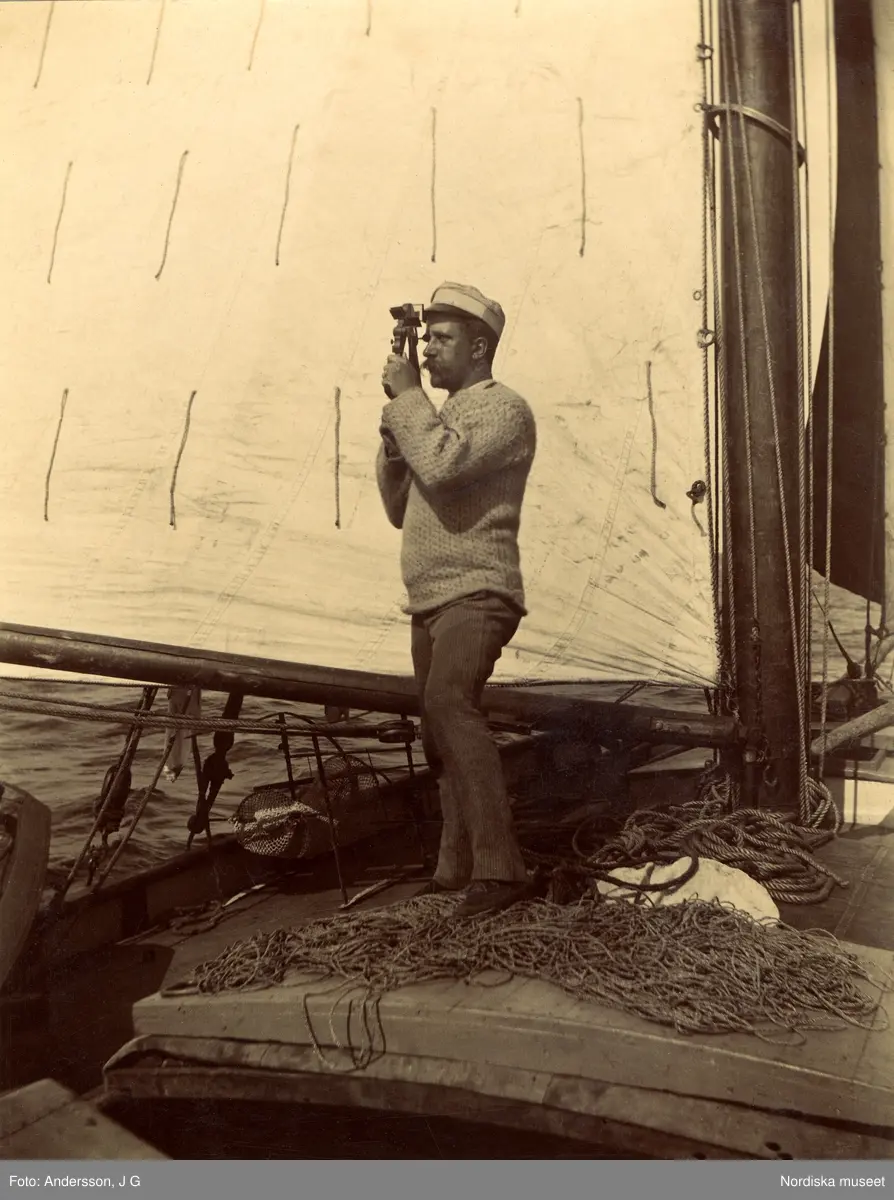 "Doktorn tar höjden. Däcket på kosterbåten Daga (på Östersjön)."