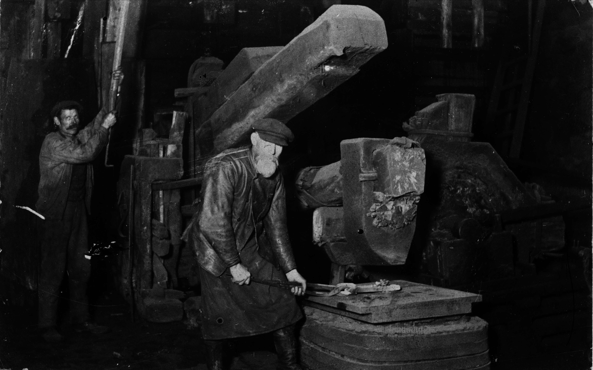 Industri. Mästersmed bredvid stångjärnshammare. Voxna bruk, sent 1800-tal.