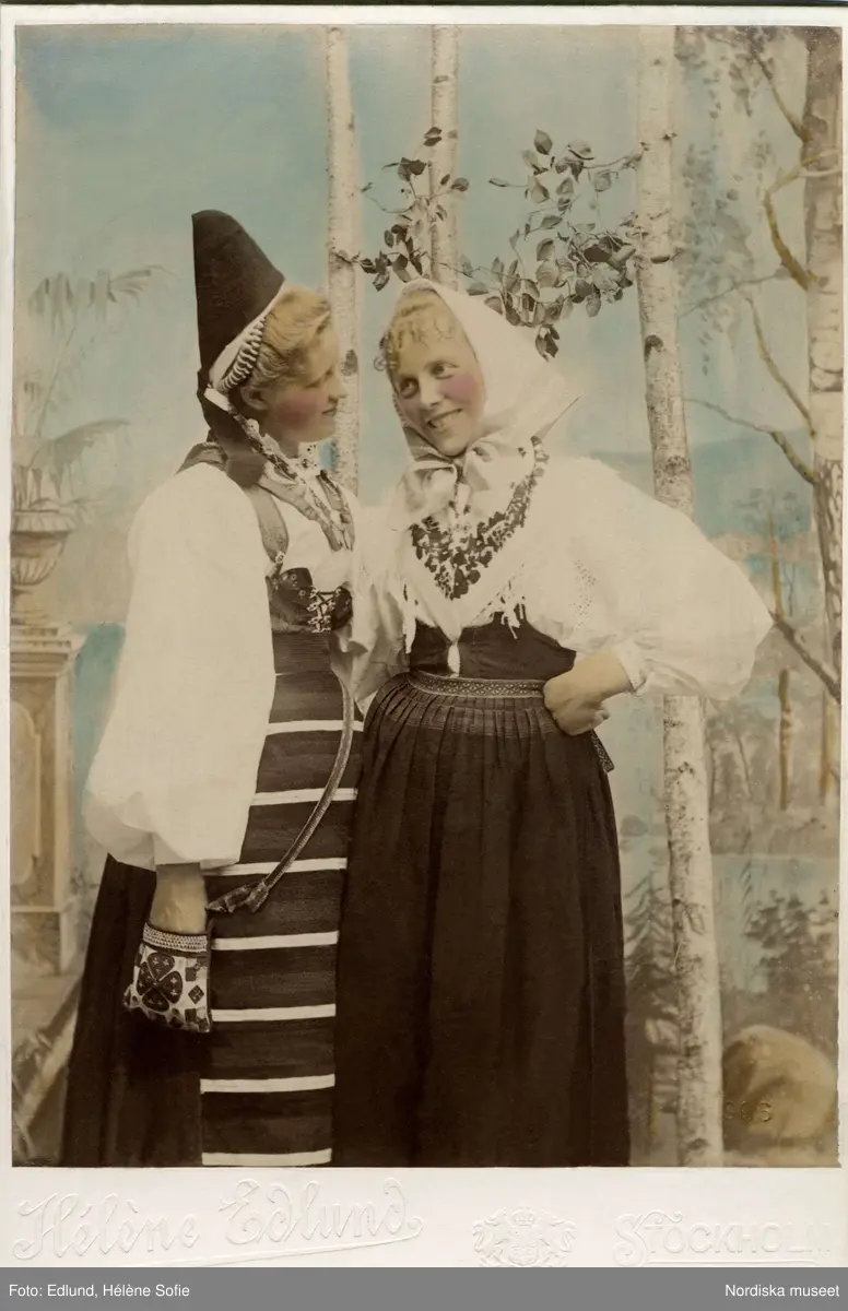 Färglagt foto efter ett kort på två unga flickor i folkdräkter