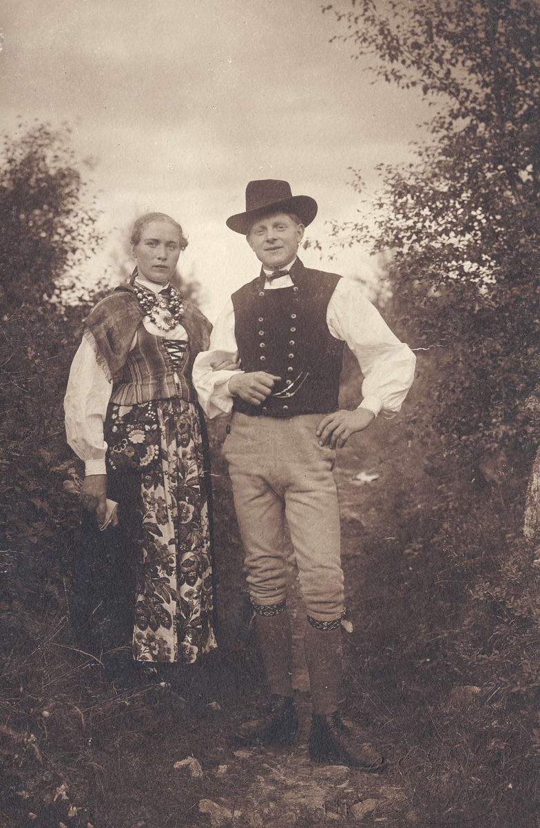 Bröllop. Brudpar iklädda Flodadräkt, Floda socken, Dalarna.