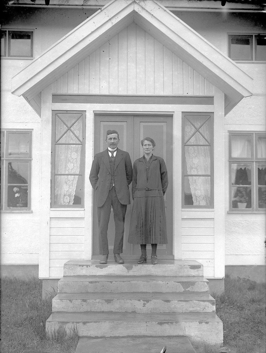 Foto av ett par i trappan av huset, från början av 1900-talet.