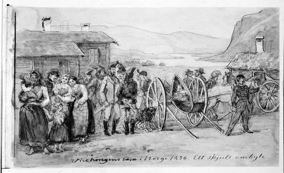 Akvarell av Fritz von Dardel. "Vice Kungens resa i Norge 1856. Ett skjuts ombyte."
