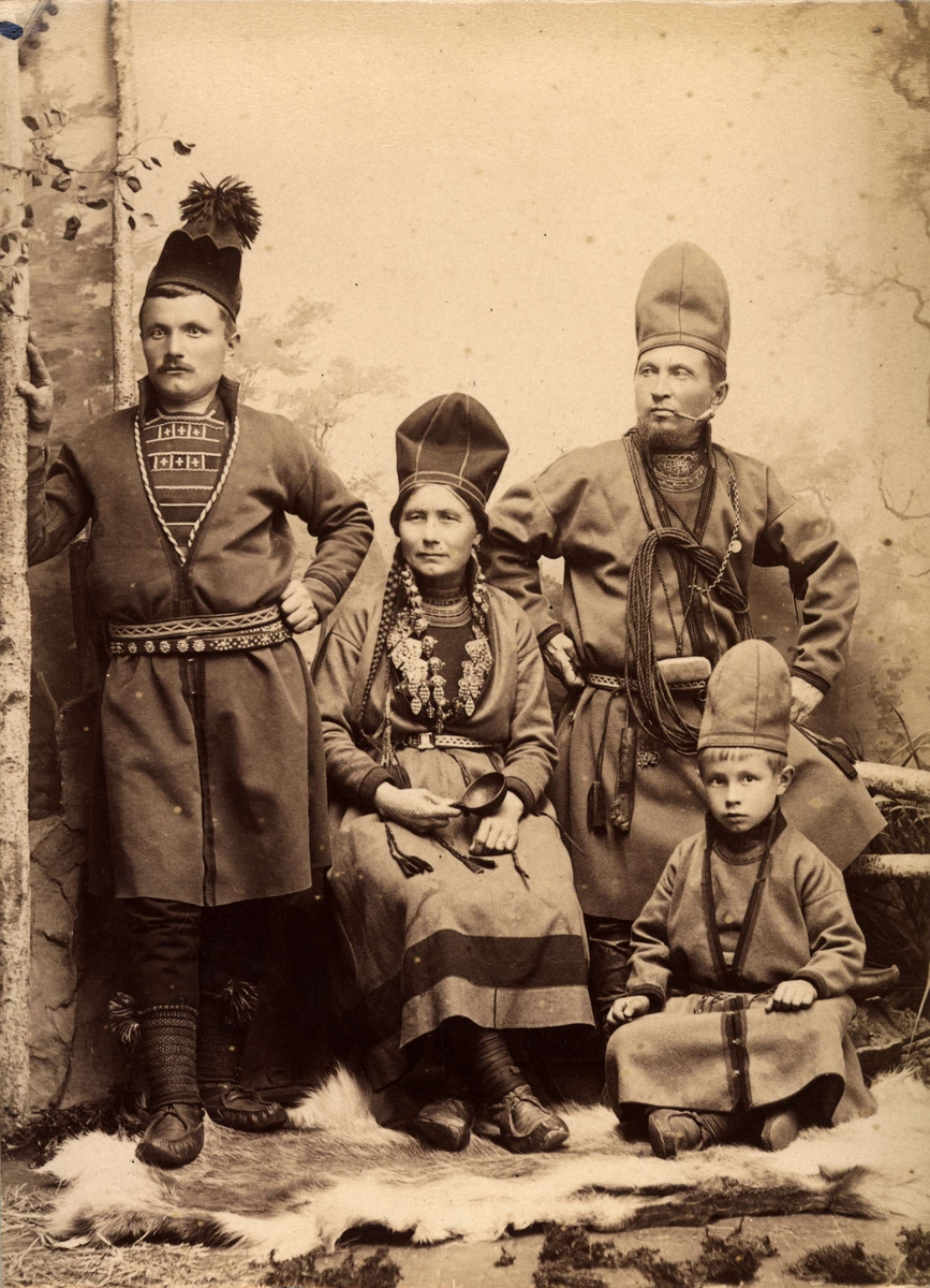 Gruppbild med fyra personer ur familjen Åren. Studiofotografi 1912.