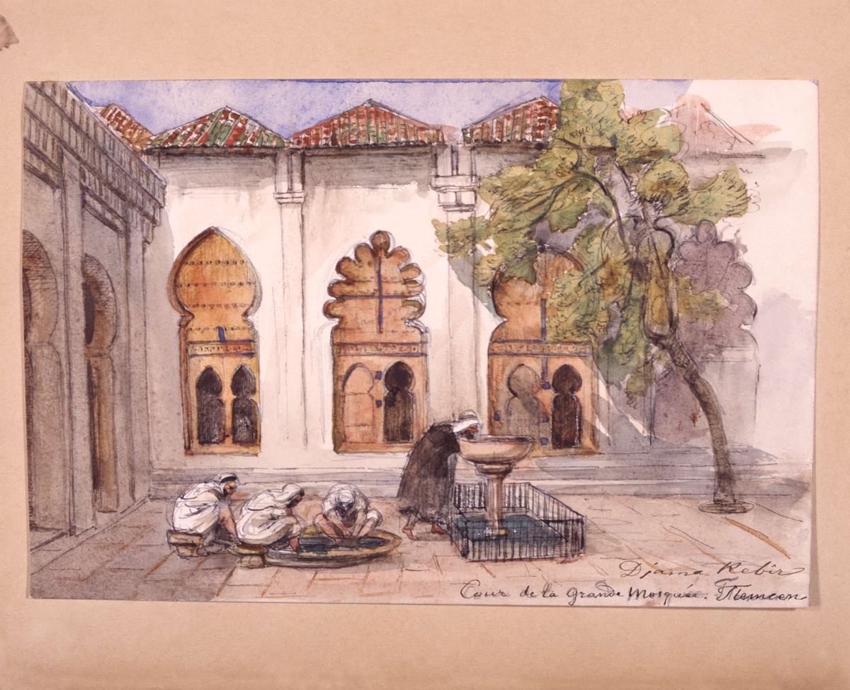 "Djama Rebir. Cour de la grande Mosquée, Tlemcen". Algeriet. Akvarell av Fritz von Dardel
