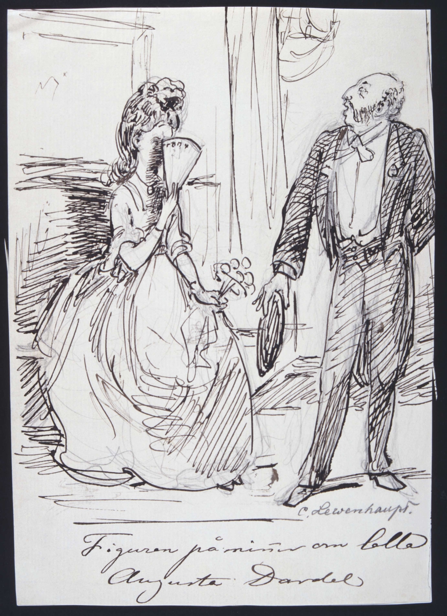 "Figuren påminner om lella Augusta Dardel". Tuschteckning av Fritz von Dardel.