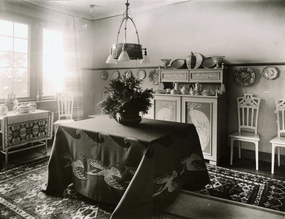 Villa Gärdsgården i Stocksund, Stockholm, ritad av Ragnar Östberg. Interiör, artisten Alf Wallander.