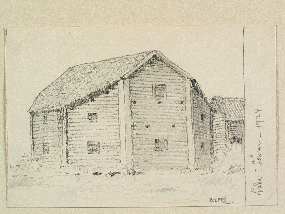 Västerbotten. Lada i Sävar. Teckning av Ferdinand Boberg