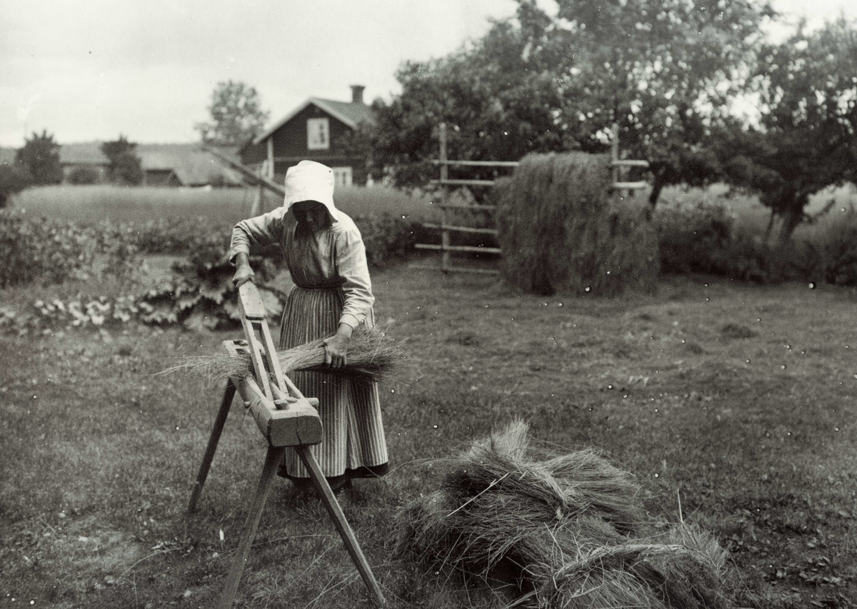 Kvinna bråkar lin.