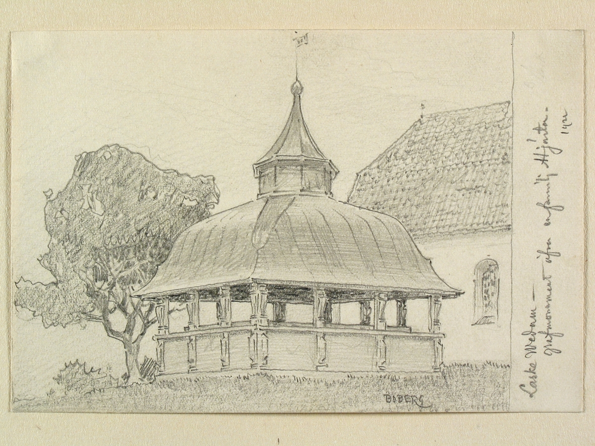 Teckning av Ferdinand Boberg. Västergötland, Laske hd., Vedums k:a, gravmonument från 1600-talet för familjen "Hjärta" (Hierta).