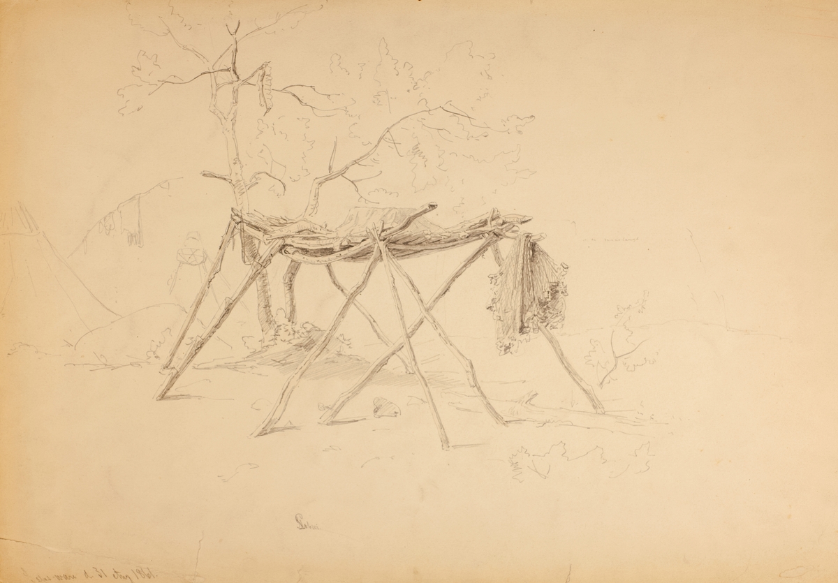 Teckning. Ställning för upphöjd förvaring. Daterad 31 augusti 1861. L.A. 1657. Sannolikt av P Holm under resa i Jokkmokks socken 1861.