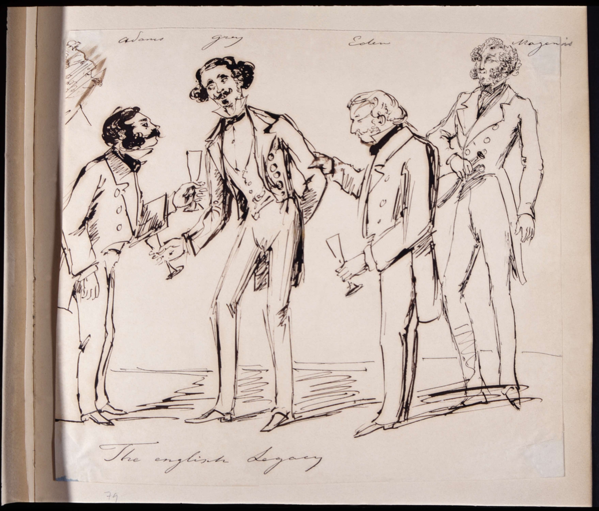 "The english legacy". Den engelska diplomatkåren. Tuschteckning av Fritz von Dardel.