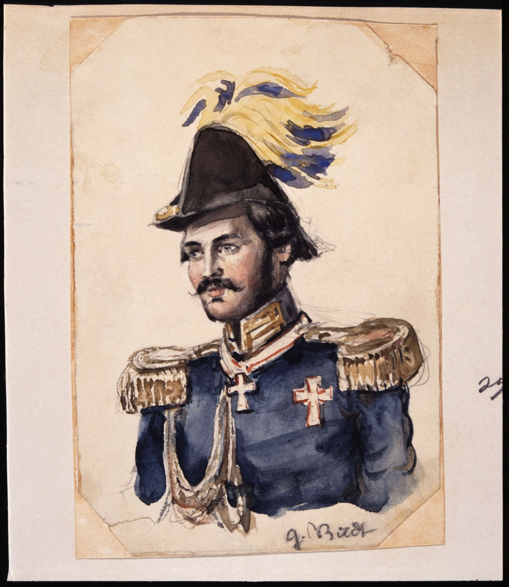Porträtt av Gillis Bildt i högtidsuniform. Akvarell av Fritz von Dardel