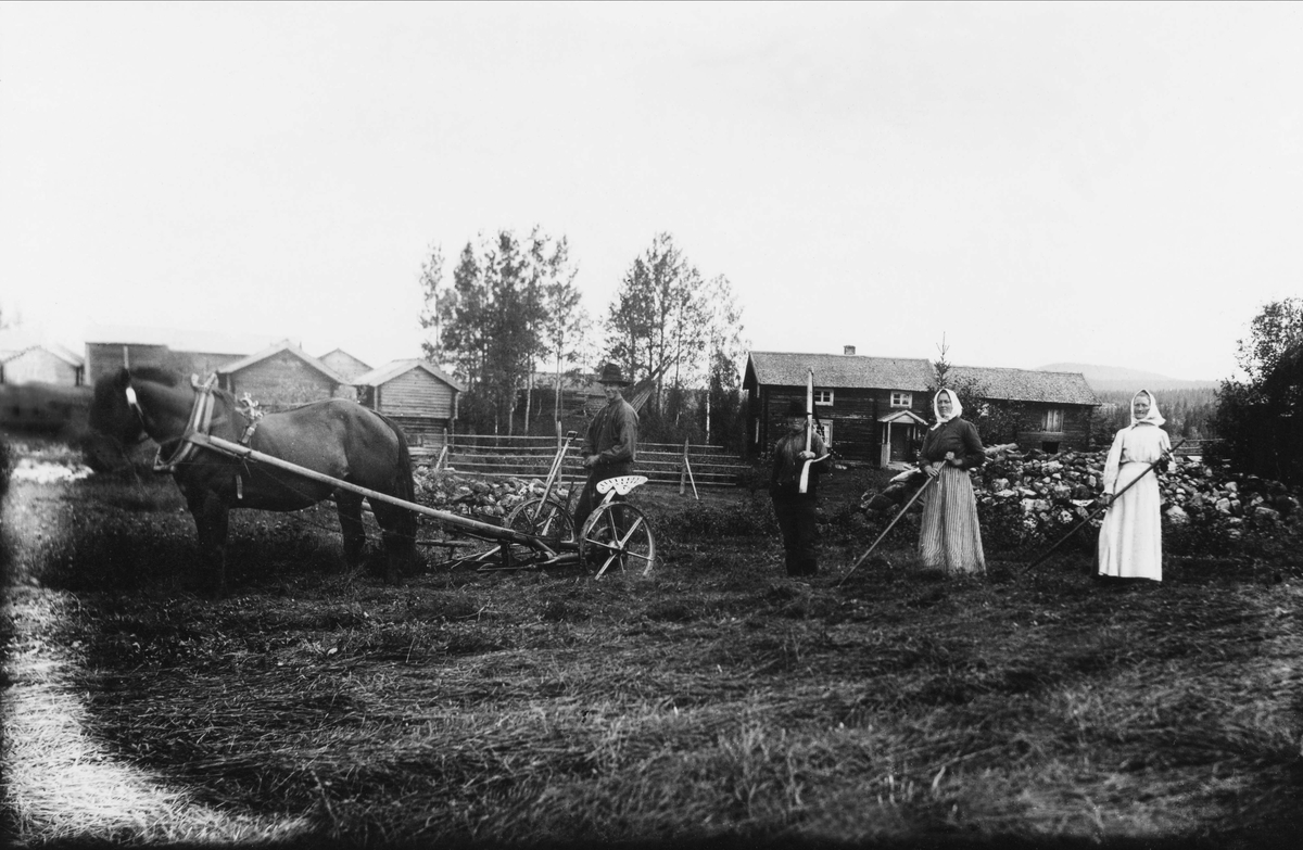 Slåtter vid Janis - Gården i Risätra. Hjertner, Myr - Olle, Maria Elggren, Janis - Johanna