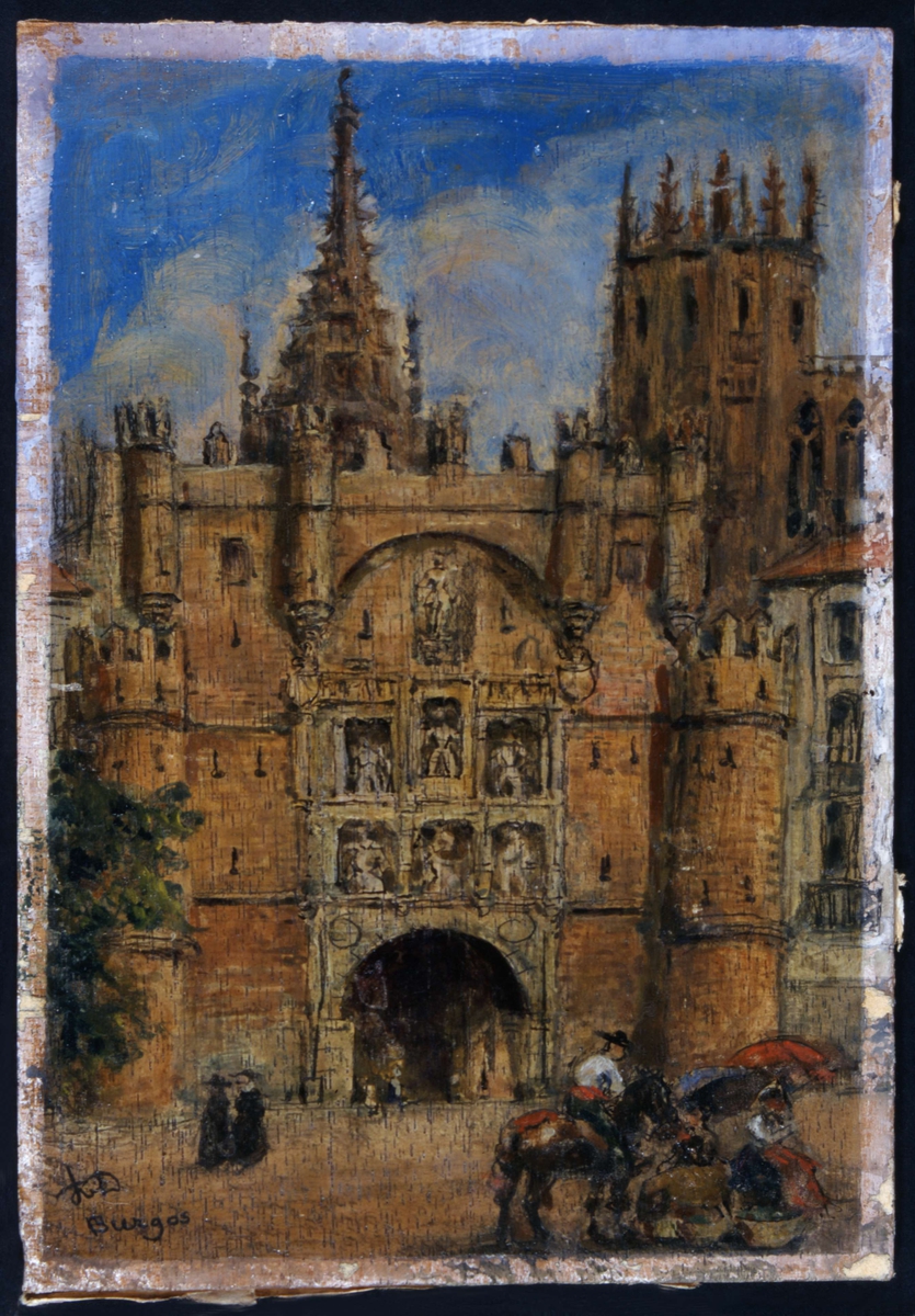 Katedralen i Burgos, Spanien. Olja på cigarrlådelock av Fritz von Dardel.
