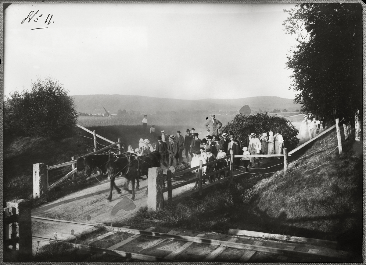 Dalarna. Åls sn. Kryckeståt, då en större björk köres fram med musik till ett blivande brudpar, som det har lysts för första gången. Uppgift lämnad av Back O. Ericsson, Holen, Insjön, som äger originalfotot.