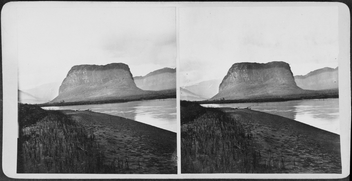 Stereoskopbild. Berget Njammats vid Rapaälven, Sarek.