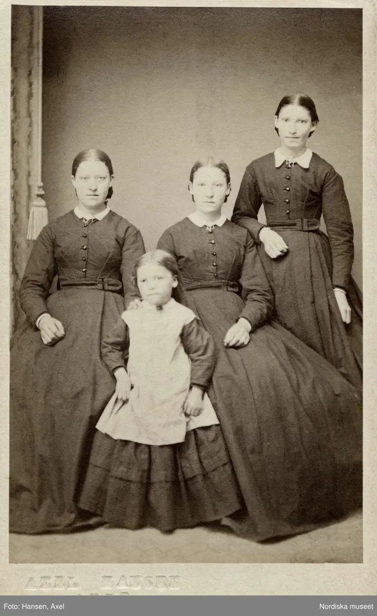 Porträtt av nämdeman Erik Nilssons i Lyngby döttrar Sissa, Hanna Christina och Anna, troligen vid 1870-talets början. Bara härad, Skåne.