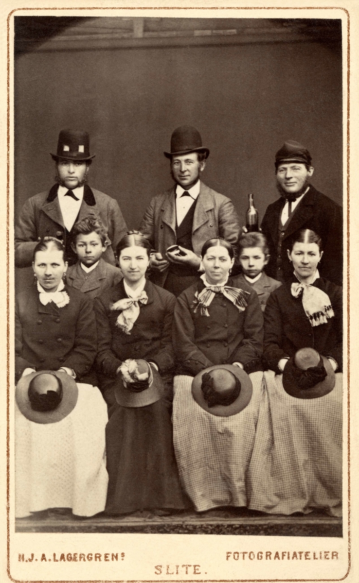 Grupporträtt. Tre män, två pojkar och fyra kvinnor