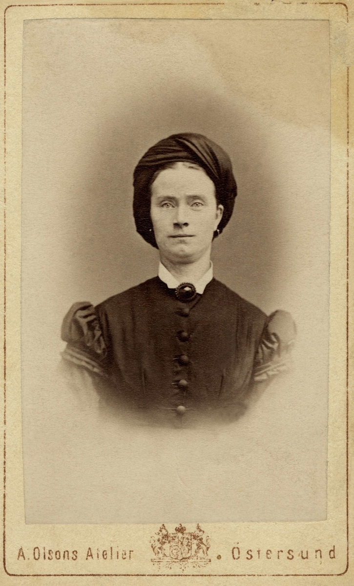 Kvinna klädd i "kringhufveplag". Jämtland.
